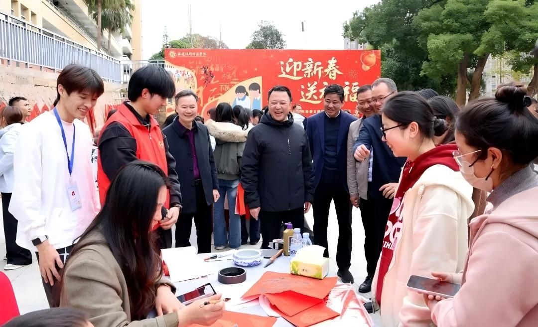 1月16日,我校在五马山校区赫曦广场举办“迎新春 送祝福”玉融民俗文化体验活动。校领导涂荣、吴克寿、林海峰、张苏、张翼、姜兴山、李启辉等与师生欢聚一堂,共迎新春。