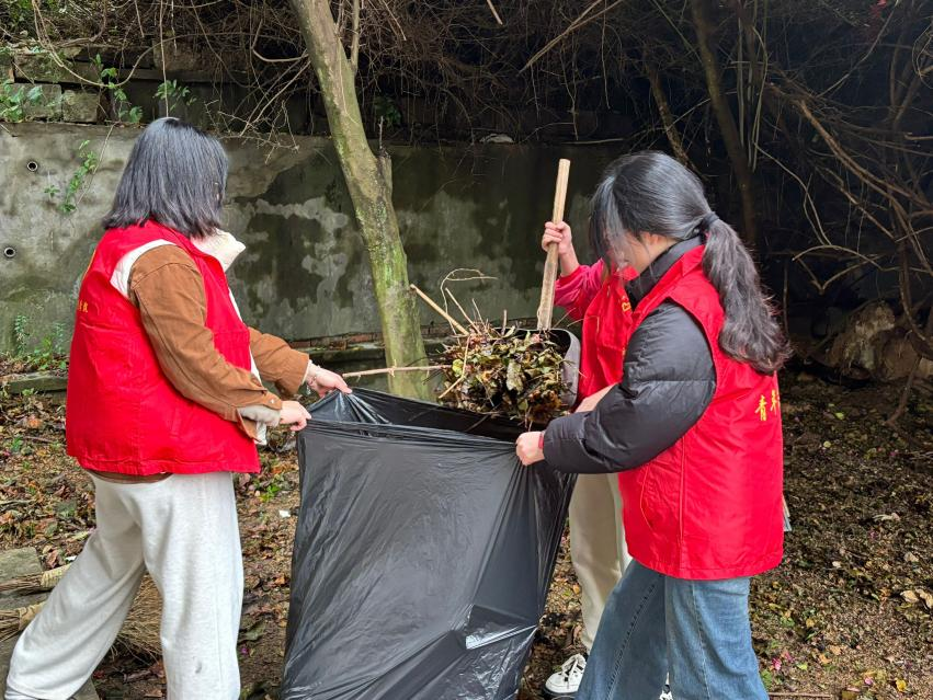 活动伊始,志愿者们准时集合,分配任务并分发工具。在五马山校区,一批志愿者前往日新园擦洗宿舍走廊栏杆;食品学院的志愿者们则前往笃思公园实验楼周边,全力清理枯叶杂草;在石竹山校区,部分志愿者在信息工程中心和教学楼周边清理绿篱中的白色垃圾。在青年志愿者的努力下,校园环境愈加美丽。