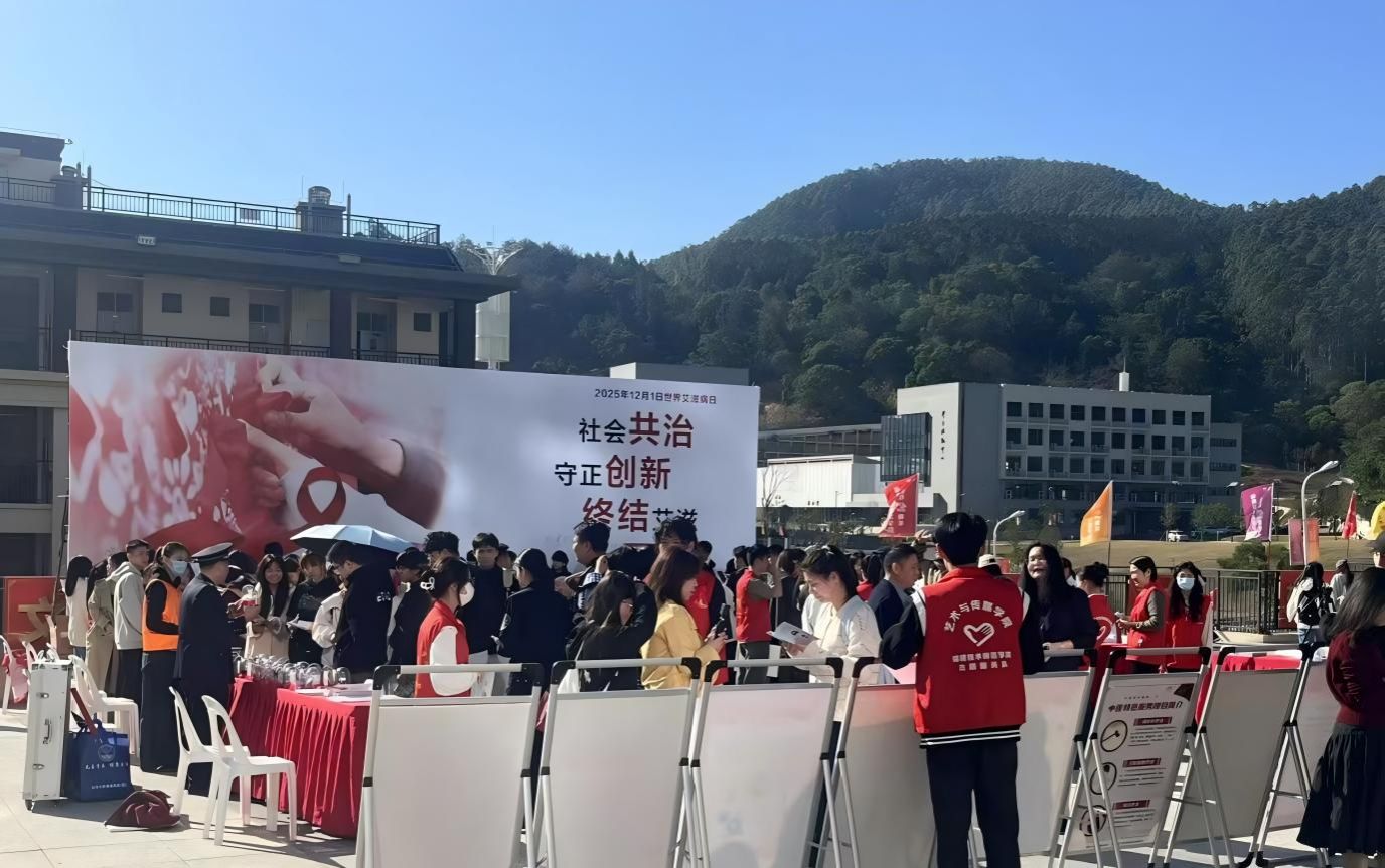 12月1日上午,我校以“社会共治 守正创新 终结艾滋”为主题在赫曦广场开展“世界艾滋病日”宣传活动。此次活动由福清市卫生健康局、福清市疾病预防控制中心(福清市卫生健康监督所)主办,福清市龙江街道社区卫生服务中心、我校艺术与传媒学院、我校红十字会及我处承办,榕城海关、福清市医院、福清市妇女联合会、福清市计划生育协会、福清市科学技术协会协办。
